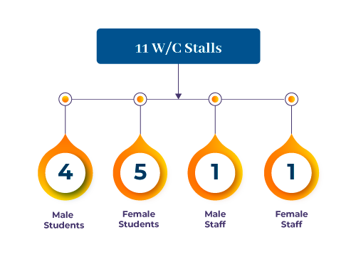 Total No. of Water Closet (W/C) Stalls: 16 (Sixteen)